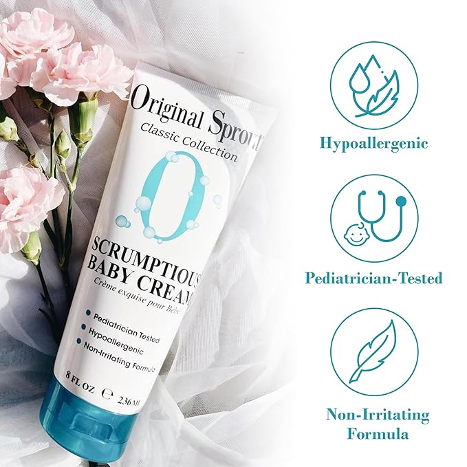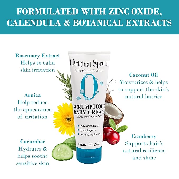 Original Sprout Scrumptious Baby Cream, Gentle Moisturizing Cream for Dry, Sensitive Skin & Diaper Rash, Non-Greasy Baby Lotion with Zinc Oxide & Calendula for Face & Body, 8 fl oz
