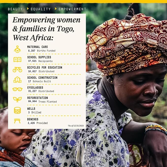 - SOCIAL IMPACT: When you choose Alaffia’s handcrafted skincare products, you support women’s empowerment, education, maternal care, and environmental sustainability in West African communities.