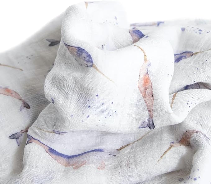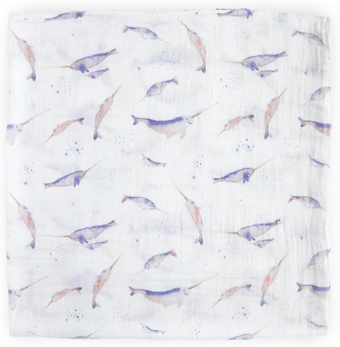 Little Unicorn Premium Cotton Swaddle Baby Blanket | Breathable Fabric | for swaddling, Play, Nursing & More (Narwhal)