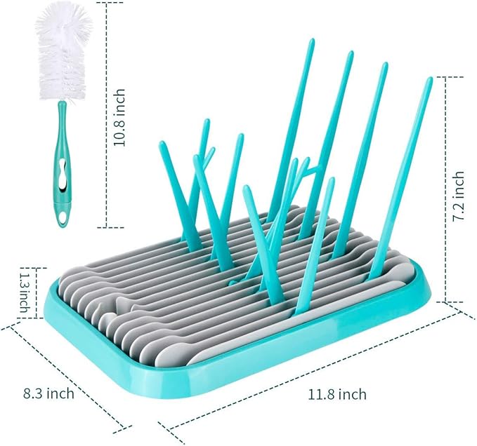 Baby Bottle Drying Rack with Bottle Cleaning Brush Set/Plastic Bag and Bottle Dryer - Drying Rack and The Planet Folds for Easy Storage