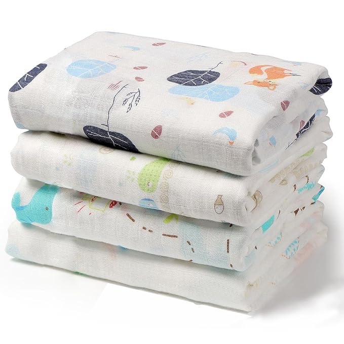 Viviland Muslin Baby Swaddle Blankets, Soft Nursery Swaddle for Newborn Boys and Girls, Gender Neutral Receiving Blankets for Infants, Fox & Whale Pattern, 47 * 47 inches 4 Pack