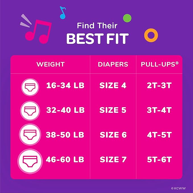- Pull-Ups Girls’ Potty Training Pants: 20 toddler training pants, size 3T-4T (32-40 lbs), Packaging May Vary