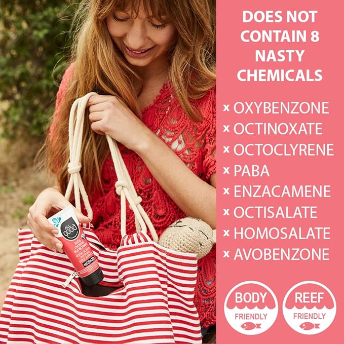 - CORAL REEF FRIENDLY AND NO HARMFUL ADDITIVES: All of our All Good reef-friendly suncare products meet broad-spectrum standards and reef-friendly criteria. Our ingredients do not include chemical UV absorbers, parabens or harmful additives (and especially no octinoxate, oxybenzone, and the other chemicals in the “Awful Eight”).