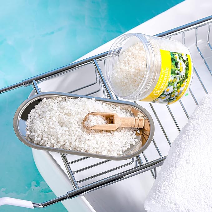- Bath Salts Gift Set: The luxurious bath gift set includes 3x sea salts with lavender, rose and chamomile scent and 3x bath bombs, morocco argan oil and wooden scoop. This spa gift for women with three different scents