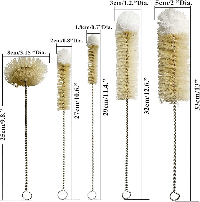 - NewFerU Soda Bottle Brush are made of Stainless Steel 304, Food Grade with Natural Boar Bristle and Wool Tips;