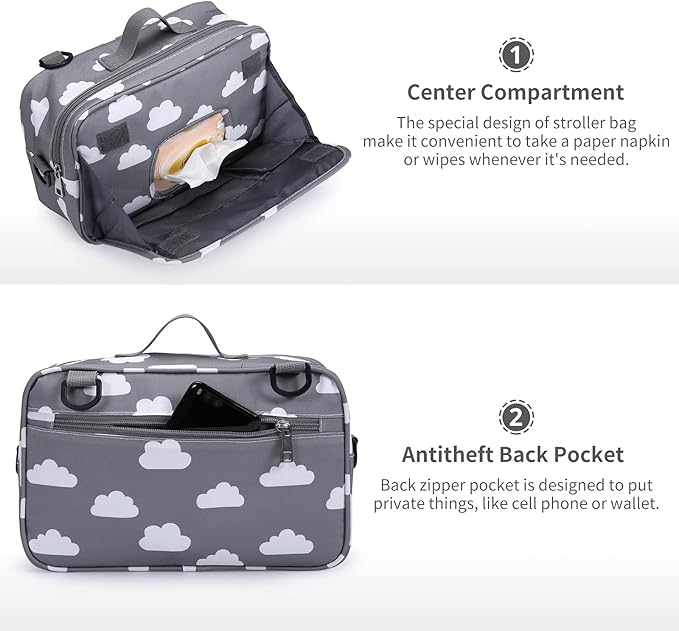 - 2 USE MODES - Hang the baby organizer on the stroller by paste velcro straps as a stroller accessory, Or pick it as a fashion shoulder bag when with the shoulder straps.