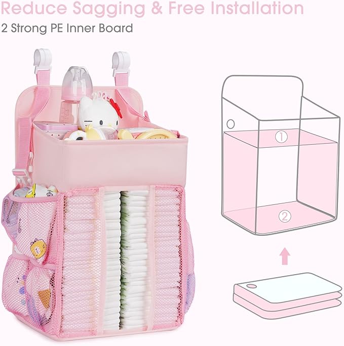 Maliton Hanging Diaper Caddy Nursery Caddy Organizer for Playard, Wall or Crib, Diaper Stacker with Baby Essentials Storage