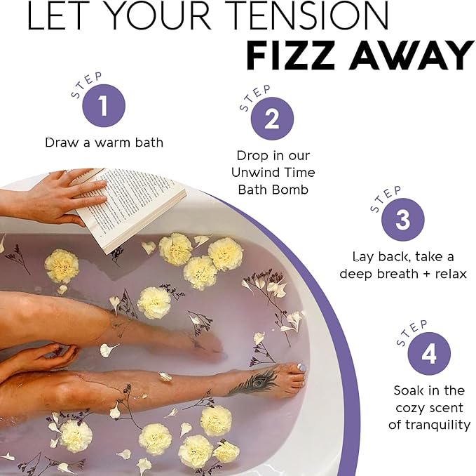 - Calming Soak Experience: Fizzing bath bombs create a relaxing soak to help ease tension and unwind