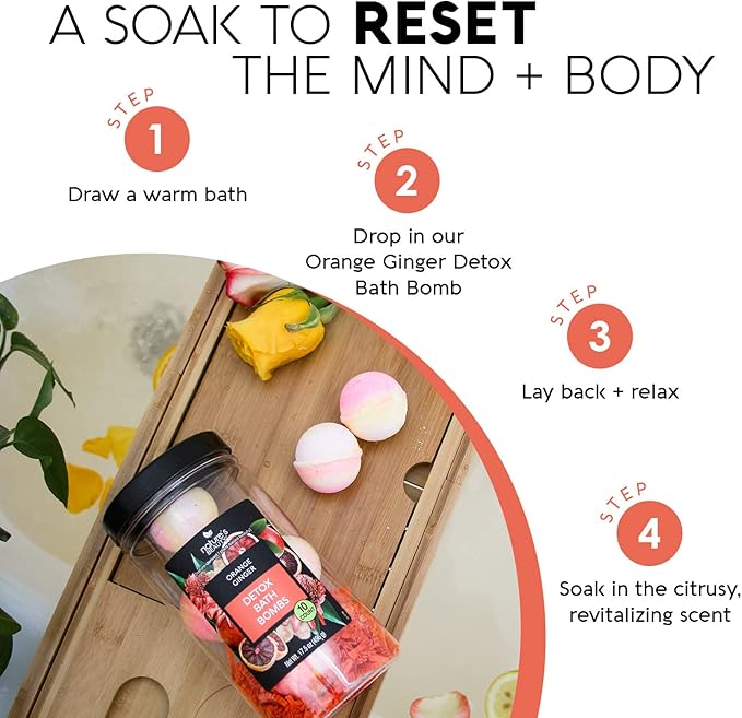 - Detox Soak Experience: Effervescent bath bombs help reset the mind and body with a refreshing soak