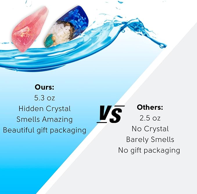 - Hidden Real Earth Crystals: These bar soap that looks like a rock have real crystals inside them. The blue soap has Turquoise gemstone and the pink soap has light rose quartz gemstone. So when the soap runs out, you are left with a crystal. Yay!