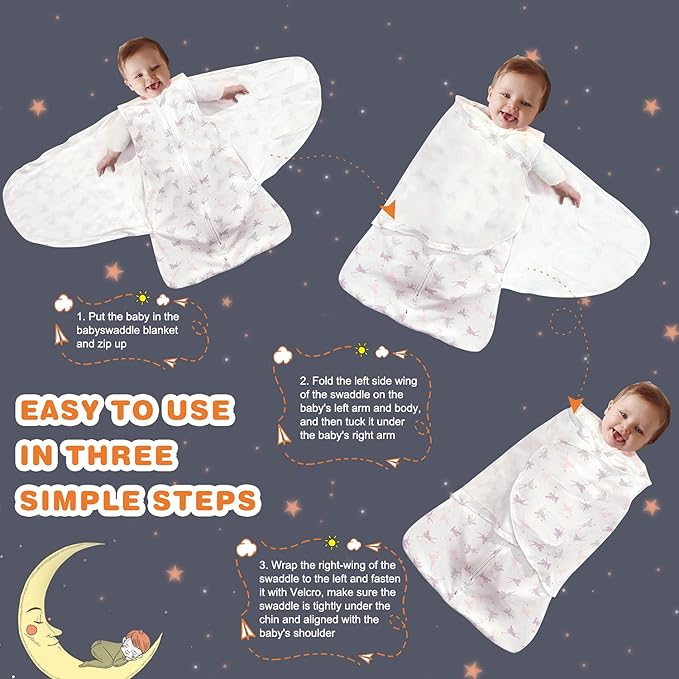 Swaddle-Blanket Baby Girl & Boy Swaddles Newborn Infant Transition 100% Cotton Wrap Blankets, 3-Way Adjustable Wearable Blanket, TOG 1.0 (Little Fairy, 3-6 Month)