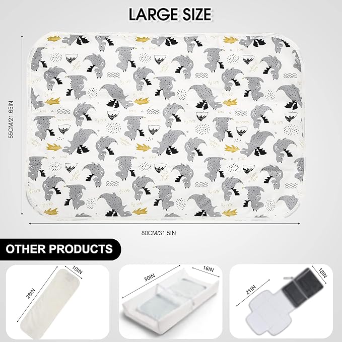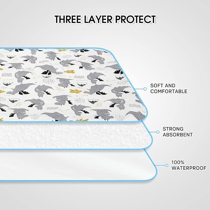 Baby Diaper Changing Pad, 21 5/8" x 31.5" Waterproof Changing Pad Liners - Reusable Soft and Absorbent Portable Changing Mat(Grey Dinosaur1PCS)