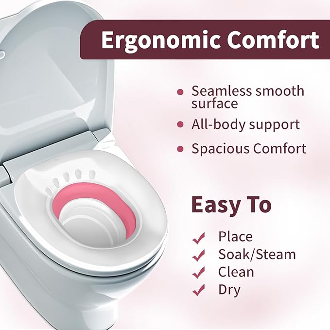 Sitz Bath for Hemorrhoids, Sitz Bath for Toilet Seat - Perineal Soaking and V Steaming, Postpartum Care - Yoni Steam Seat - Collapsible Storage - Use with Sitz Baths Salt