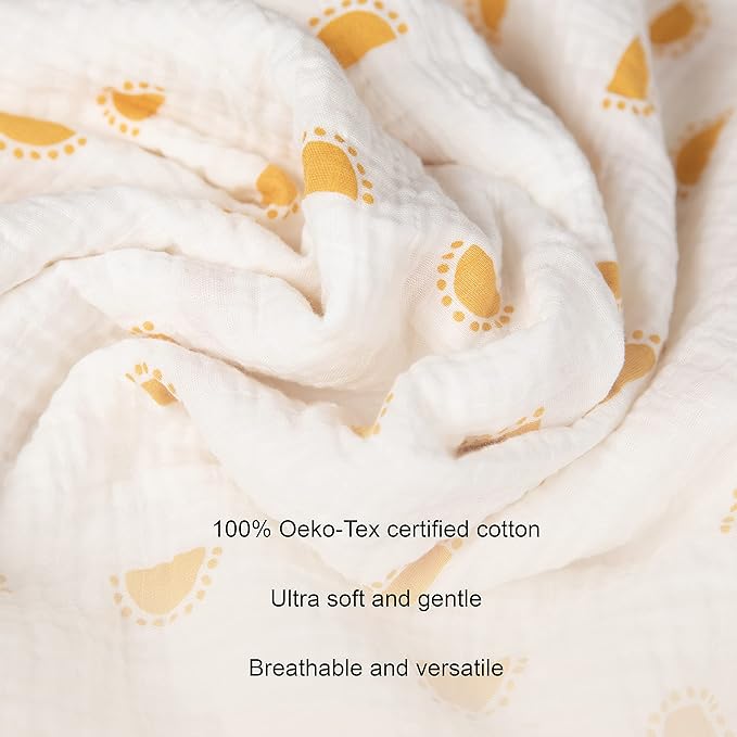 Sticky Toffee Muslin Swaddle Baby Blanket, Yellow Suns, 47 x 47 in, Soft Breathable Oeko-Tex Cotton Newborn Wrap and Receiving Blanket