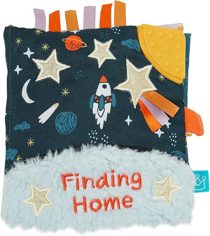 Manhattan Toy Little Rocket Finds Home Soft Activity Crinkle Book for Baby & Toddler with Tethered Characters Small