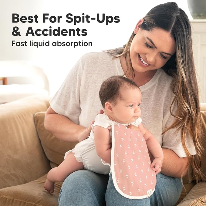 - Stylish and Gender Neutral - Our absorbent burp cloths are designed to seamlessly match with any outfit for baby girls and boys. Embrace the essential clean look with our baby burp cloths. One of the must-have baby essentials.