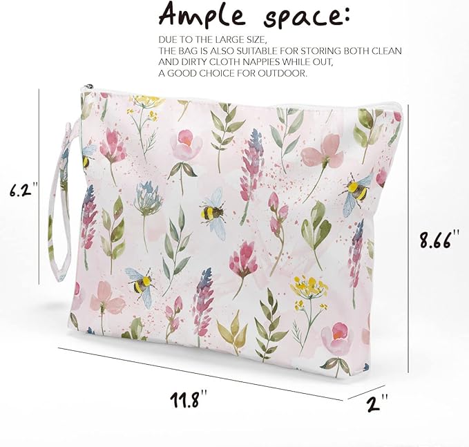 Fokongna Wet Bag, Wet Dry Bag, Makeup Bag, Toiletry Bag, Waterproof Large Capacity Travel Cosmetic Bag, Zipper Pouch for Women, Girls Mo Wife Sister Friends Baby Diaper Bag Bee Wildflower gifts