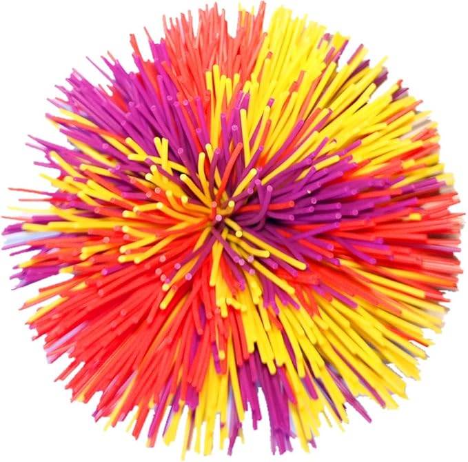 4.5Inch Large Rainbow Stringy Ball Silicone Bouncing Fluffy Jugging Ball,Monkey Stress Ball (Purple+Red+Yellow)