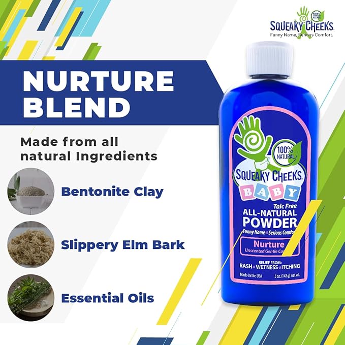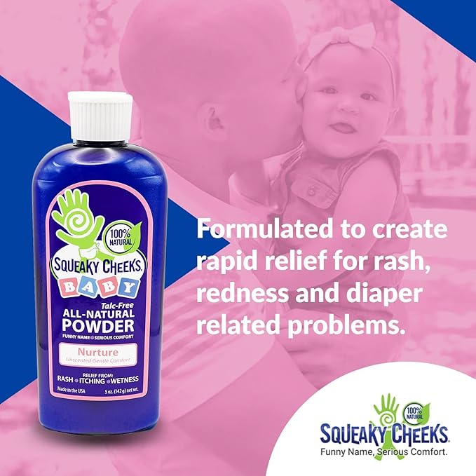 Squeaky Cheeks Baby Powder (5oz) | Organic | Unscented Talc-Free and All Natural Powder | Effective Relief from Rash Wetness and Itching | Also Ideal for Adults
