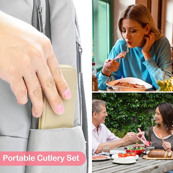 - WIDELY USED - Wheat straw material is more lightweight to carry, you can easy to put them in bento box, backpacks and other bags. In addition to daily use, the portable dinnerware sets are also perfect for camping, travel, picnic and working lunch.