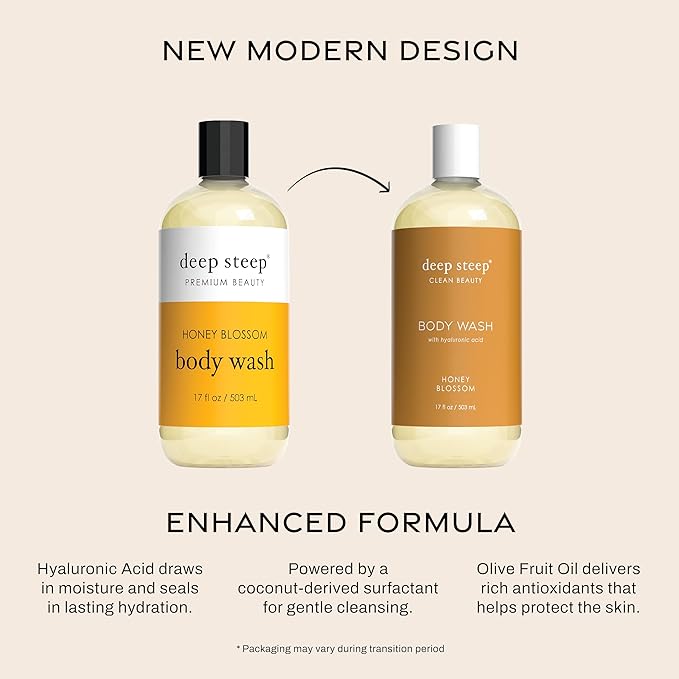 Deep Steep Body Wash, Honey Blossom, 17 oz – Hydrating Shower Gel with Hyaluronic Acid, Shea Butter, Aloe Vera & Argan Oil – Vegan, Clean Beauty, Clean & Refreshed Skin