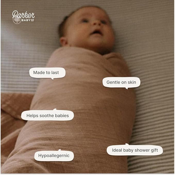 - LARGE 47 X 47" SIZE - Each baby blanket swaddler is generously sized at 47 x 47" of soft, comfortable and breathable gauze muslin cotton. The Parker Baby Swaddling Blankets are large enough to easily wrap or swaddle babies from newborns and infants to toddlers.