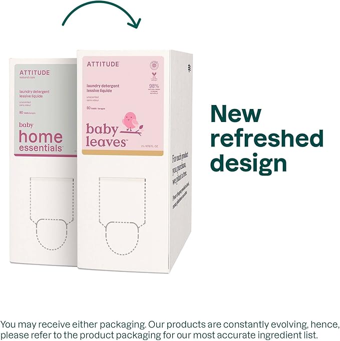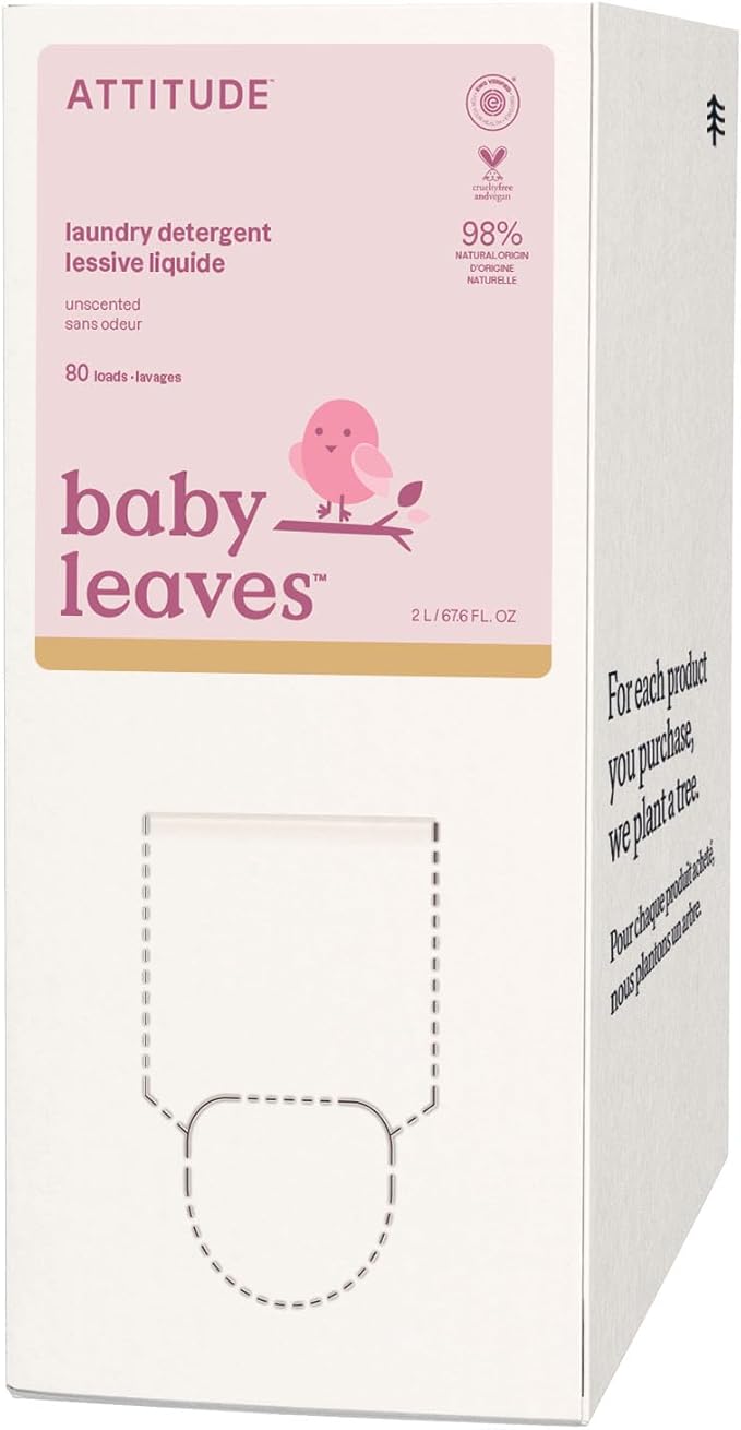 ATTITUDE Baby Laundry Detergent Liquid, EWG Verified, Safe for Baby Clothes, Infant, Newborn, Vegan, Naturally Derived Washing Soap, HE Compatible,