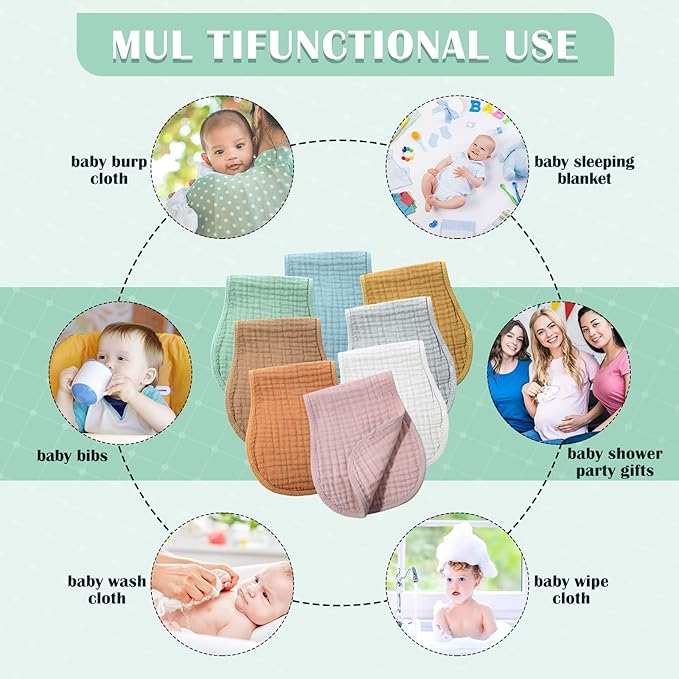 - Thoughtful Gifts: the muslin baby burp cloths are suitable as thoughtful gifts given to newborn babies or parents on their baby shower party, baby registry, baby birthday and other occasions, helping them take good care of their babies