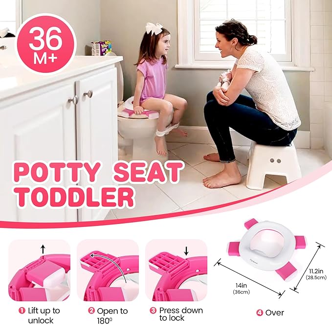 Orzbow Portable Potty Seat for Toddler Travel, Potty Training Toilet for Boys and Girls 18+ Months, Includes Storage Bag and 40pcs Disposable Liners, Travel Toddler Toilet Seat with Splash Guard, Pink