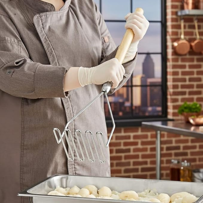 - Measures 24” x 4-1/2" x 1", 24” Square Potato Masher with Wooden Handle, Chrome Plated.