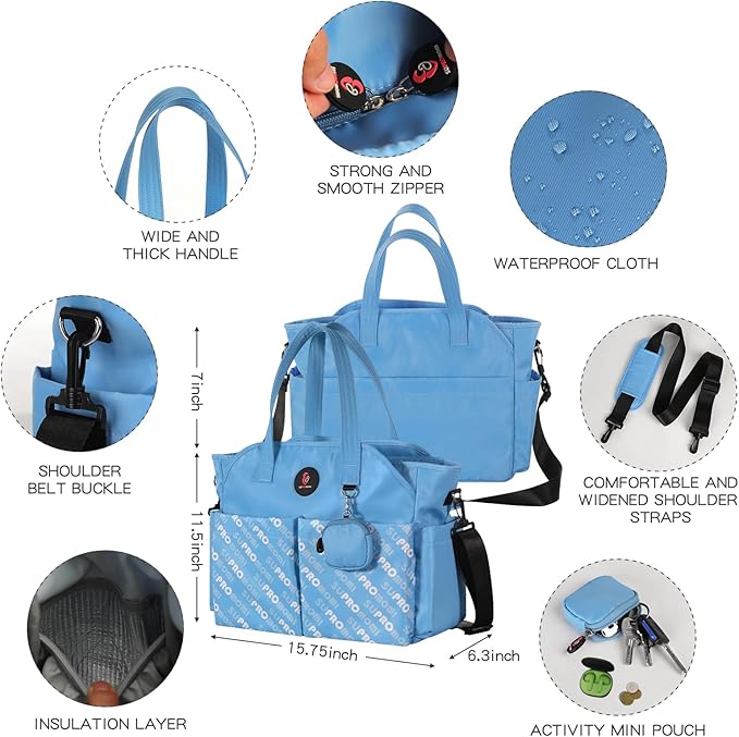 • Luxury Tote Diaper Bag :SUPROMOMI Neutral baby Bag is made of high quality polyester material, free of harmful substances such as lead and phthalates, durable and waterproof. The detachable, adjustable shoulder strap can be used crossbody bag, the long tote handle can be used as a diaper bag or one shoulder diaper bag, and the super cool baby boy diaper bag and stylish baby girl diaper bag are the first choice for shopping, and also suitable for mom and Dad travel diaper bags
