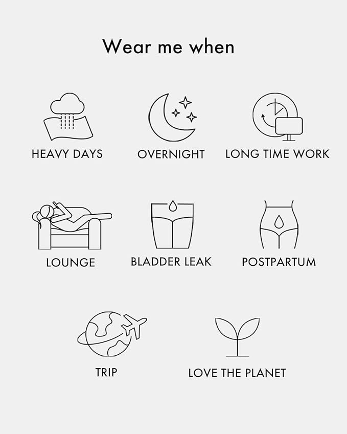 - 【ULTIMATE ABSORBENCY AND X-DRY】: Experience ultimate absorbency and stay dry all day & night with our high-tech Moisture-Lock technology, providing an exceptional capacity to hold 12 tampons(80-90ml) during heavy flows. Our super leak-proof fabric with surround barrier design offers 4-sides leak proof protection, while The full-coverage gusset ensures leak-proof performance in any situation — whether you're sitting, moving, or sleeping in any position.
