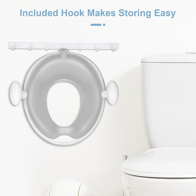 - Ergonomic Design - Streamlined high-back design fits the baby's back, ergonomic design protect your baby's spine from damage. Also, anti-splash design of the training seat prevents spills outside the toilet. Self-contained hook design for easy storage, detachable high quality cushion makes cleaning easy.