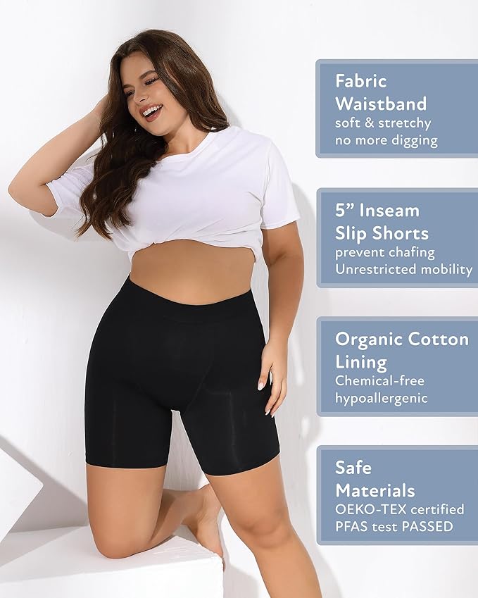 - Enjoy unparalleled comfort and coverage with our Anti-Chafing Hi-Rise period underwear in a 5-inch inseam slip shorts style. Say goodbye to irritation as it features a fabric waistband and no side seams for a seamless and irritation-free experience. Move freely and feel confident knowing you have full front-to-rear coverage while staying protected against chafing.