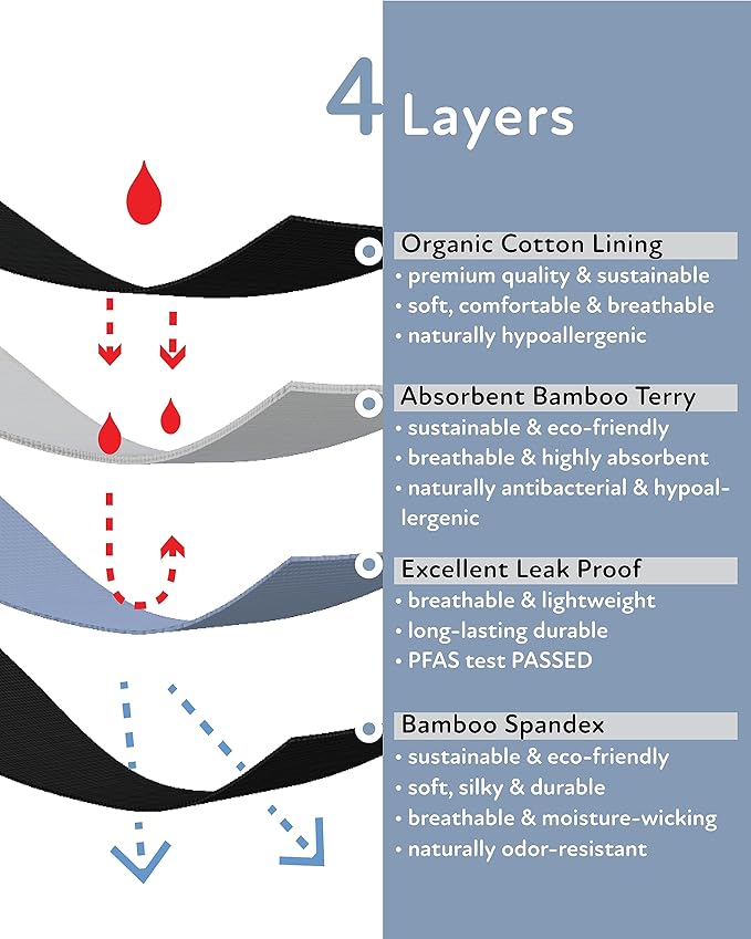 - Immerse yourself in a world of luxurious comfort with our premium period boyshorts. Crafted with care using viscose made from bamboo (body), terry viscose made from bamboo (absorbent layer), and organic cotton (crotch lining), these top-quality materials provide a SAFE, SOFT, and SUSTAINABLE option. Experience unmatched breathability, ultimate softness, and the superior comfort you deserve.