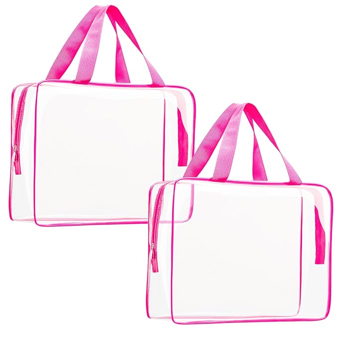 • Improved 0.6mm thickened transparent PVC material, softer and more pliable, durable and reusable; 2 PACKS Large clear toiletry bag (11.8" x 3.9" x 8.7")