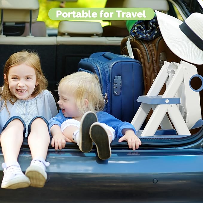 - 2-in-1 Usage : Our multifunctional toilet seat can be used as a step stool for children to reach higher places in addition to being a training toilet ladder. It is convenient for your kids to wash their hands or take things. The product is light and convenient for children to carry by themselves, and the foldable design makes it easy to store.
