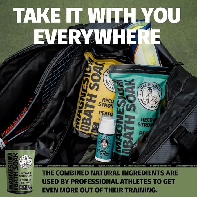 - Recovery Bundle for Fall: Elevate your seasonal wellness routine with the Coach Soak Recovery Bundle, featuring magnesium bath salts and lotion designed to support muscle comfort. Perfect for the transition into cooler weather, this bundle combines bath essentials for relaxation and skin nourishment