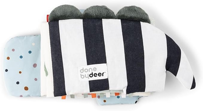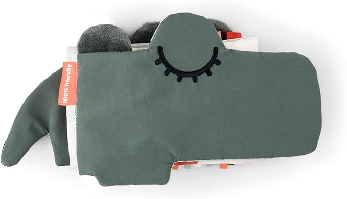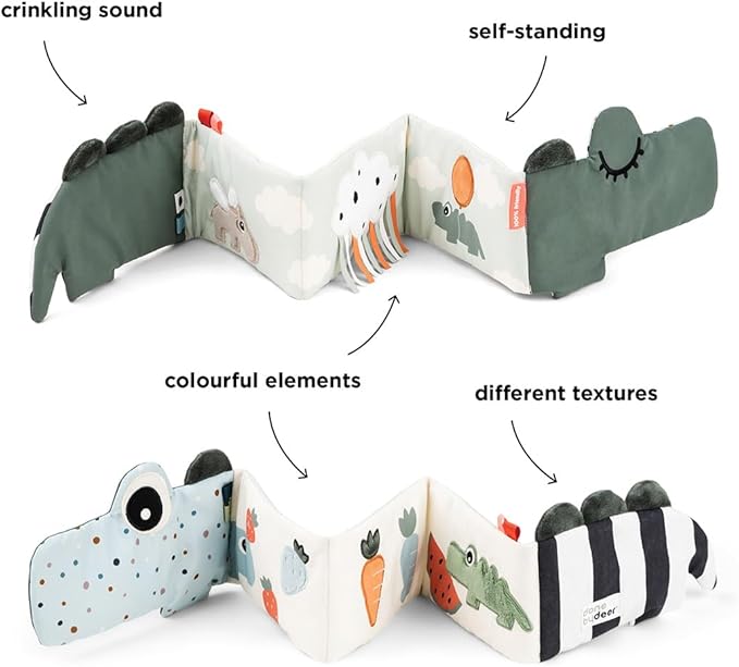 Done by Deer Fold-Out Soft Book Croco Green - Baby Activity Toy for Curious Little Minds and Fingers - High Contrast Patterns - Crinkle Baby Toys - Baby Tummy time Toys