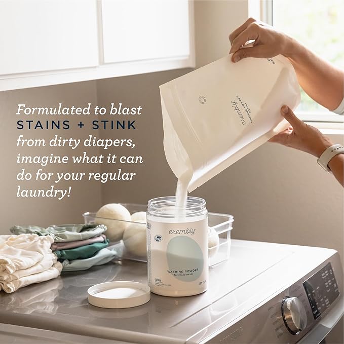 Esembly Laundry Washing Powder – HE Mineral Based Detergent for All Household Laundry and Cloth Diapers – Patented, Fragrance-Free, EWG Verified, Earth-Friendly, (3lb Refillable Canister and Scoop)