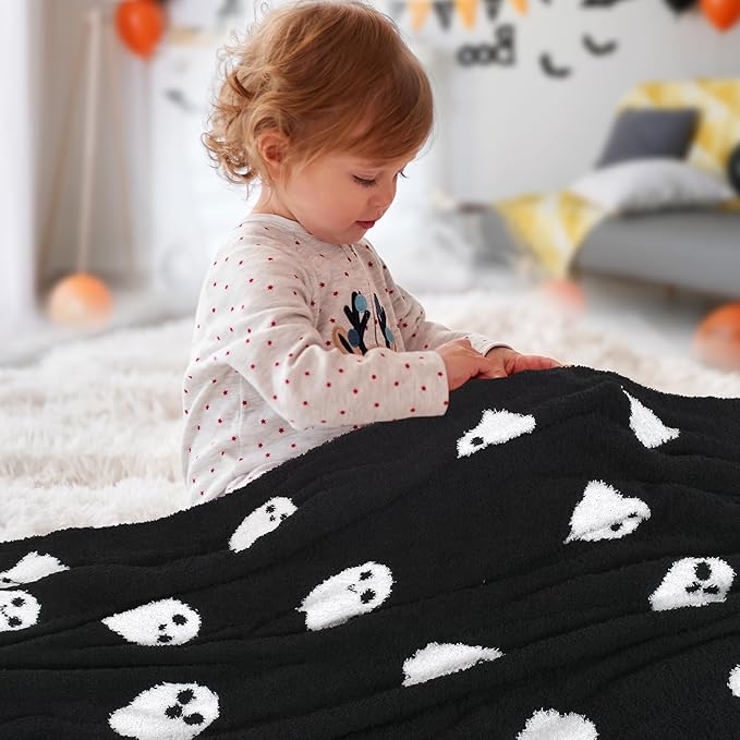 Halloween Decor Soft Baby Blanket Cozy Swaddling Blanket for Newborn Nursery Kids 30x40 Inch Black Ghost