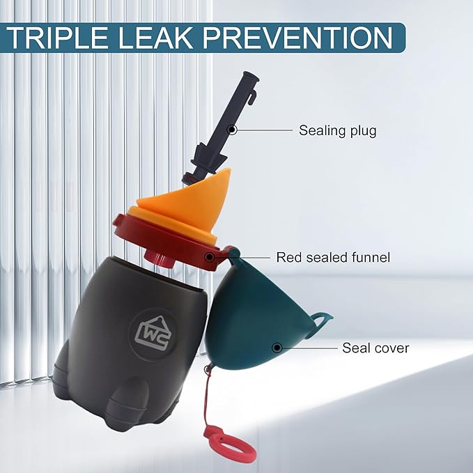 - 【Excellent tightness】This travel urinal for kids uses a triple seal,with a sealing cover,a red sealing funnel and a sealing plug.You don't have to worry that it will leak out and wet your bag and prevent the smell from leaking.