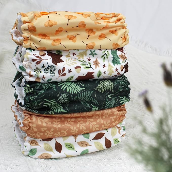 Mama Koala 3.0 Pocket Cloth Diapers for Babies with AWJ Lining, 6 Pack with 6 5-Layer Natural Cloth Diaper Inserts - Reusable and Washable Pocket Diapers(A-Falling Leaves)