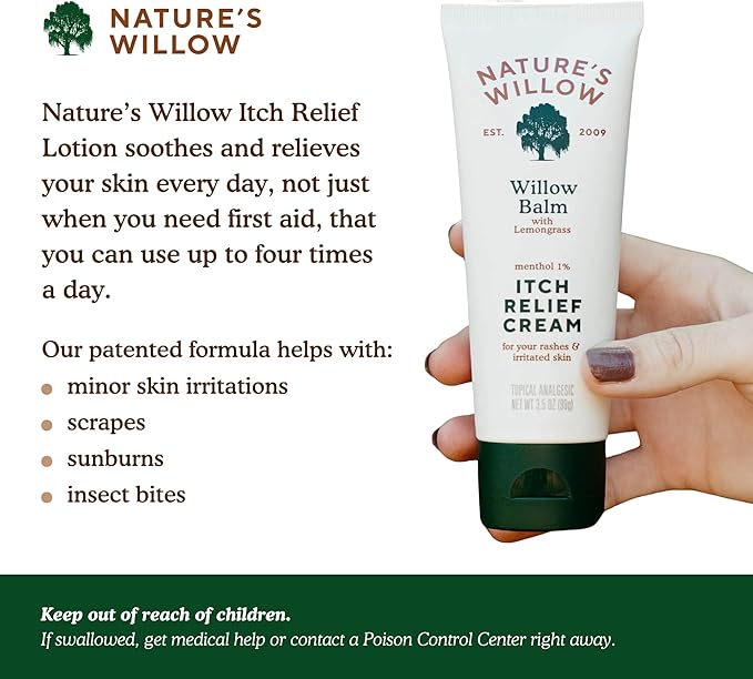 - Soothing the Itch: Our soothing, all natural lotion can help you find relief from itching caused by bug bites, rash, dry skin, sunburn, and more. People who suffer from eczema, hives, or psoriasis may also find relief. Nature's Willow Itch Relief Lotion is a must-have for people who enjoy camping, nature walks, picnics, or any outdoor activity.