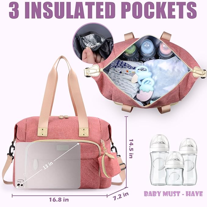 Tuwubi Diaper Bag Tote,Baby Diaper Bag with Pacifier Case Large Travel Diaper Tote Caddy for Mom and Dad Multifunction Large Baby Bag - Pink