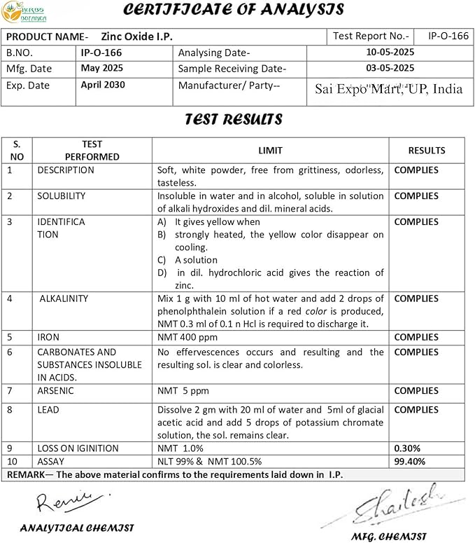 - Active Ingredients : Zinc Oxide Powder
