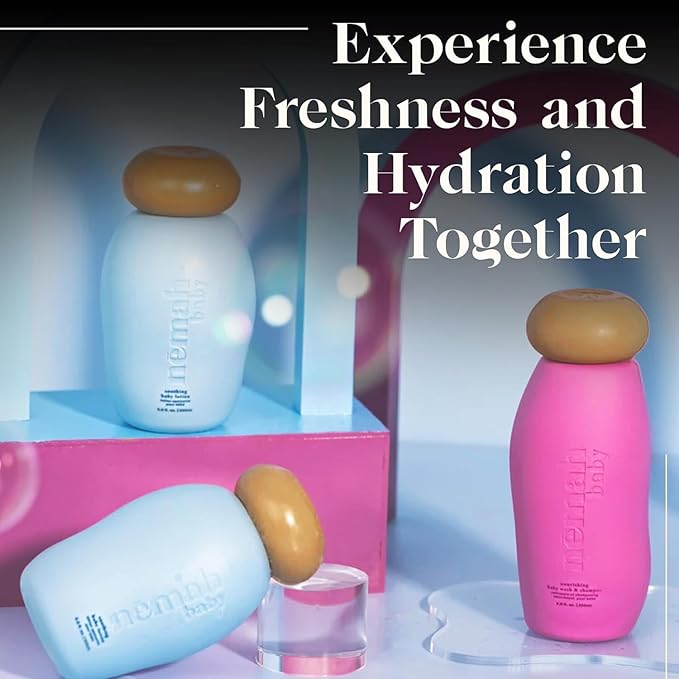 - The Nurturing Baby Care Duo - Transform baby bath time into a loving experience for your little one with the Soothing 2-in-1 Baby Body Wash & Shampoo & Calming Baby Body Lotion bundle from Nēmah. With our baby products, your baby receives only the hygienic pampering care they deserve.