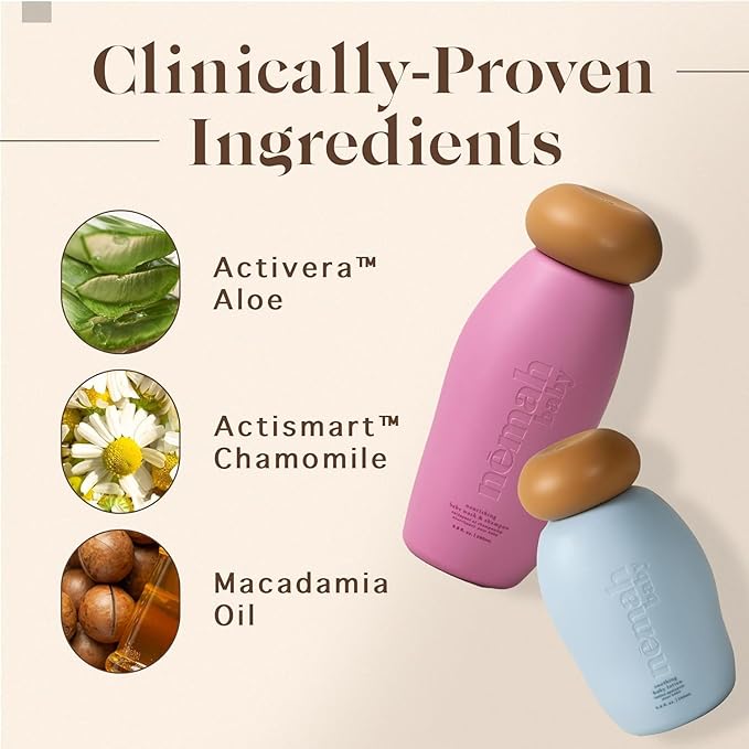Nemah - Soothing 2-in-1 Baby Shampoo & Wash and Calming Body Lotion, a Moisturizer for Babies & Toddlers, Plant-Derived, Vegan & Gluten-Free