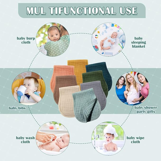 - Comfortable Material: the baby burp cloths are made of muslin material with well stitched edges, soft and skin friendly, comfortable and breathable, moisture absorbing, which are machine washable, saving your time and efforts; Please note that the product may shrink after washing