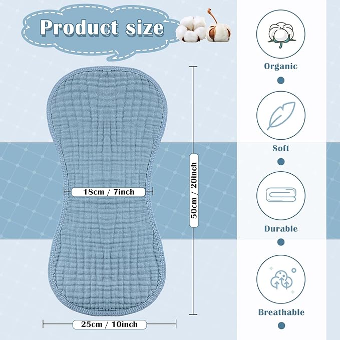 - Comfortable Material: the baby burp cloths are made of muslin material with well stitched edges, soft and skin friendly, comfortable and breathable, moisture absorbing, which are machine washable, saving your time and efforts; Please note that the product may shrink after washing